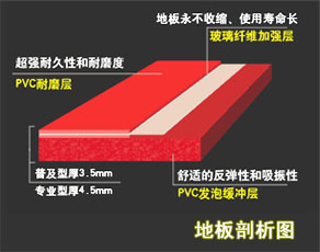 ⒈ 本产品由PVC耐磨层、玻璃纤维加强层和PVC发泡缓冲层组成。